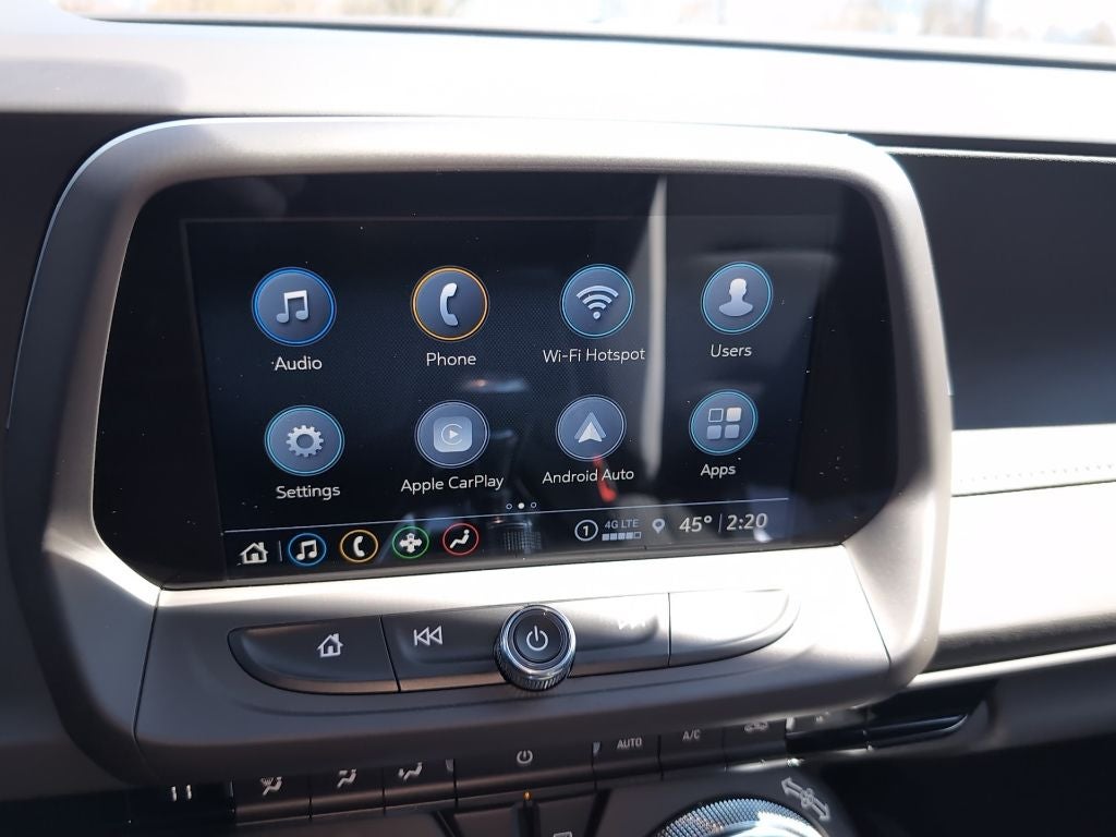 - Audio system, Chevrolet Infotainment 3 Plus system, 8" diagonal HD color touchscreen, AM/FM stereo Bluetooth® audio streaming for 2 active devices, Apple CarPlay and Android Auto capable, voice recognition, in-vehicle apps, cloud connected personalization for select infotainment and vehicle settings. Subscription required for enhanced and connected services after trial period.